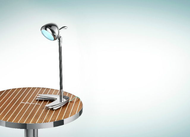The Aquariva table lamp has a sophisticated design inspired by the classic Search Light featured on the Riva yachts of the 1960s. It is named after the Aquariva yacht - heir to the glorious boats of the past - which has been in production since 2001 and includes the lamps as standard fittings. The lamp’s many exclusive and stylish details include a touch-sensitive switch and the stem in black Mambo. The steel base has three overlapping sections, calling to mind the famous prow of the Aquarama and Aquariva speedboats, and when opened out the pattern is reminiscent of a boat propeller. The lamp is designed by Mauro Micheli, co-founder with Sergio Beretta of Officina Italiana Design and the creative mind behind all Riva yachts.