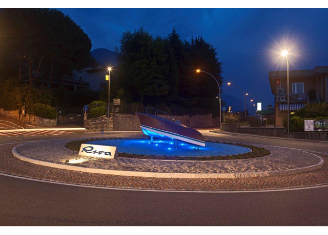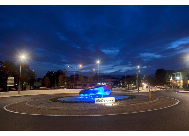 The roundabout and its monument further enhance the strong connection between Riva, Sarnico and, more in general, the Sebino area, the territory where this successful and excellence story begun. The success of the brand is strictly connected to the development of many local companies supplying the shipyard, working in several different sectors, from steel furniture to tapestry. This roundabout is the timeless witness of all these sectors which have linked their business to the history of Riva.