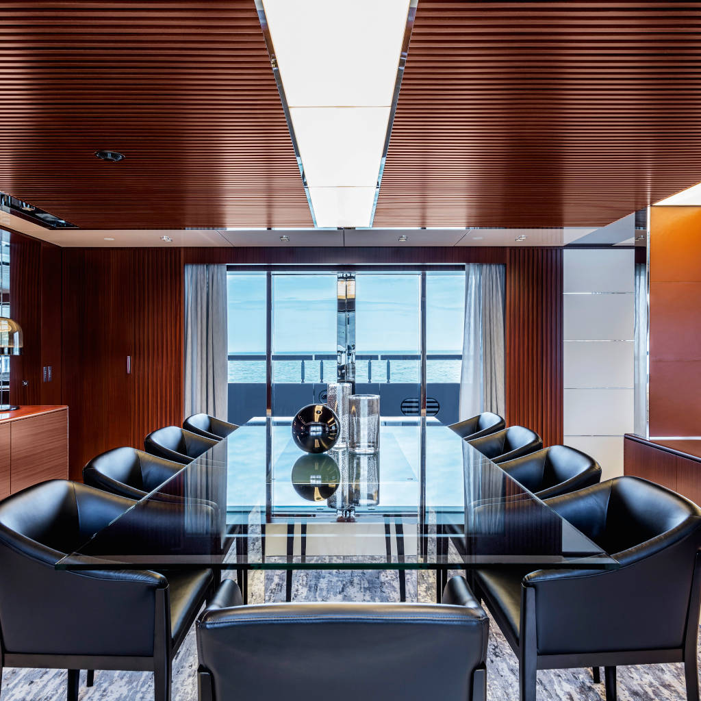 Diseñada por Officina Italiana Design, el estudio fundado por Mauro Micheli y Sergio Beretta, la Riva Superyachts Division reproduce el estilo del icónico astillero en una nueva dimensión, gracias a una perfecta combinación de diseño y tecnología.