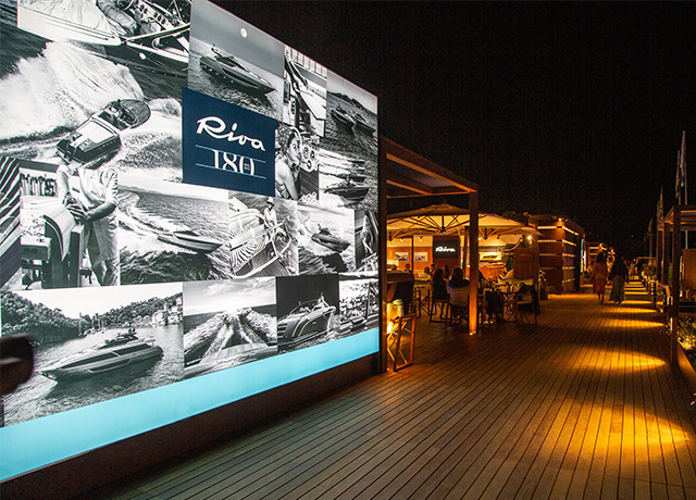 Smeralda Holding主催で運営されるRivaラウンジは、“Riva inside, inside Riva” というコンセプトの下、ブランドの価値をヨット世界に止め置きません。ヨットの係留場所近辺にある世界有数のホテルやクラブ、レストランをRivaの特徴であるアクアマリンとマホガニーブラウンの2色でペイント。乾いた大地にあってもRivaブランドのデザイン・ディテール・ヘリテージが目に飛び込んできます。