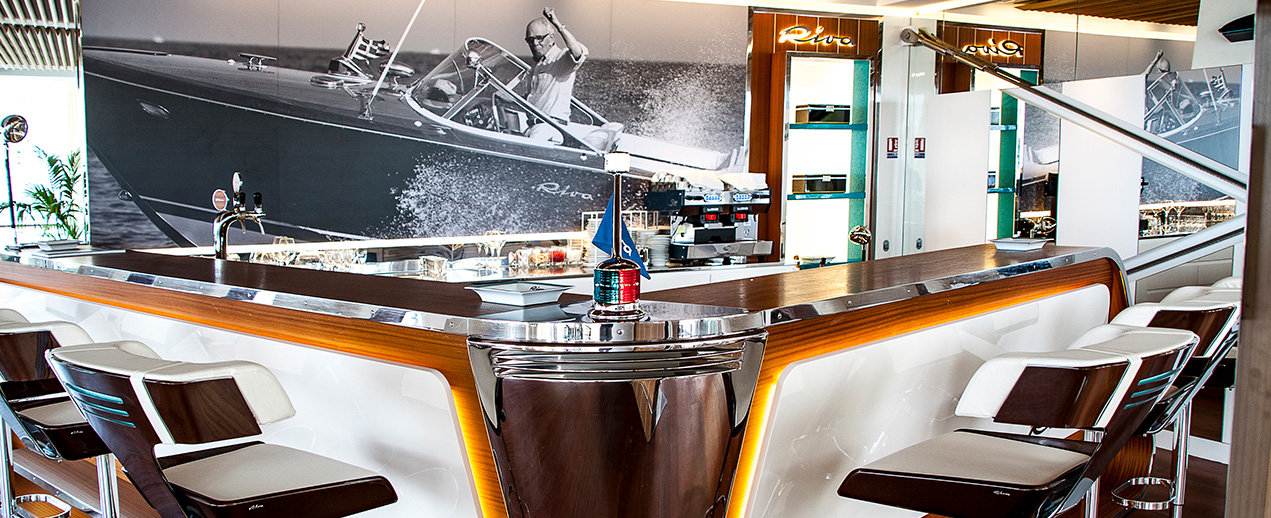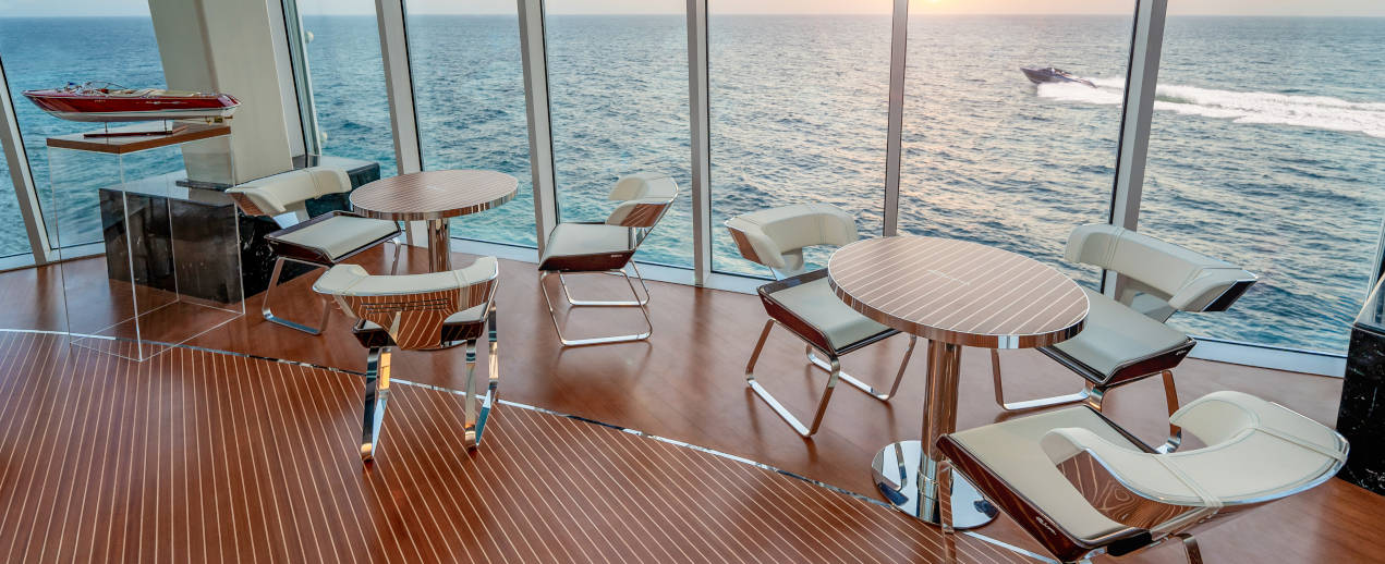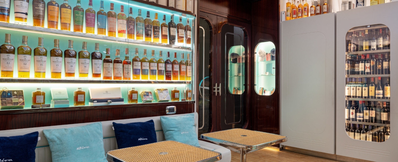 Находящиеся в знаменитом отеле Hotel de Mar Gran Meliá на великолепном острове Майорка, Riva Lounge и Riva Privée, выходящие в пышный сад с видом на Средиземное море, воплощают неповторимый стиль яхт Riva, переосмысливая их культовые предметы интерьера и материалы в обстановке, сочетающей в себе элегантность легендарного морского бренда с выдающимся гостеприимством, присущим Gran Meliá.